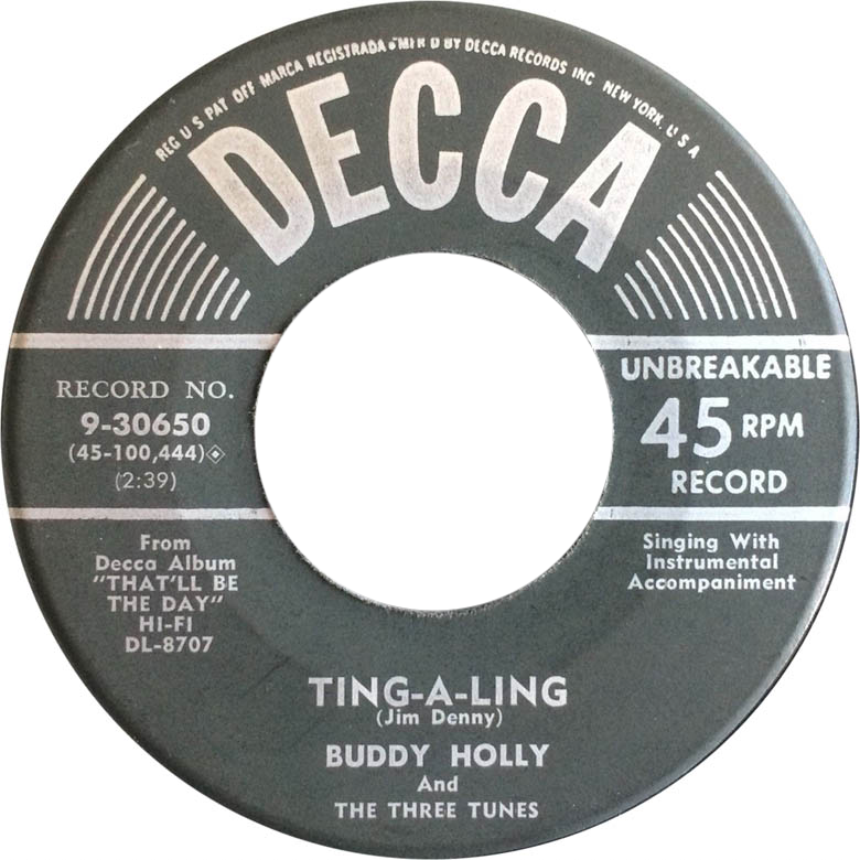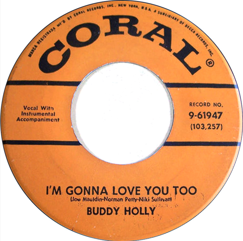 Recorded 17 December 1957 Little Baby was co-written by Holly and pianist CW Kendall, Jr. who was in Clovis at the time to undertake some recording with his own rock’n’roll combo, The Big Beats. For the session, Kendall joined The Crickets, providing a rollicking boogie-woogie style backing. The addition of a piano gave The Crickets a much fuller sound – especially since the band was now a trio, as Niki Sullivan had left at the beginning of December over various conflicts with Allison and Holly and the desire to launch his own solo career. Little Baby first appeared as a track on Holly’s eponymous debut album on Coral that was released in March 1958. The Big Beats eventually opened several shows for The Crickets; Kendall continues to play piano today, and still performs with The Big Beats in the Dallas, Texas area.