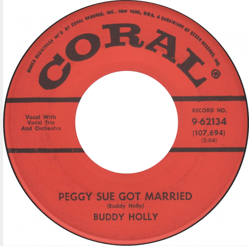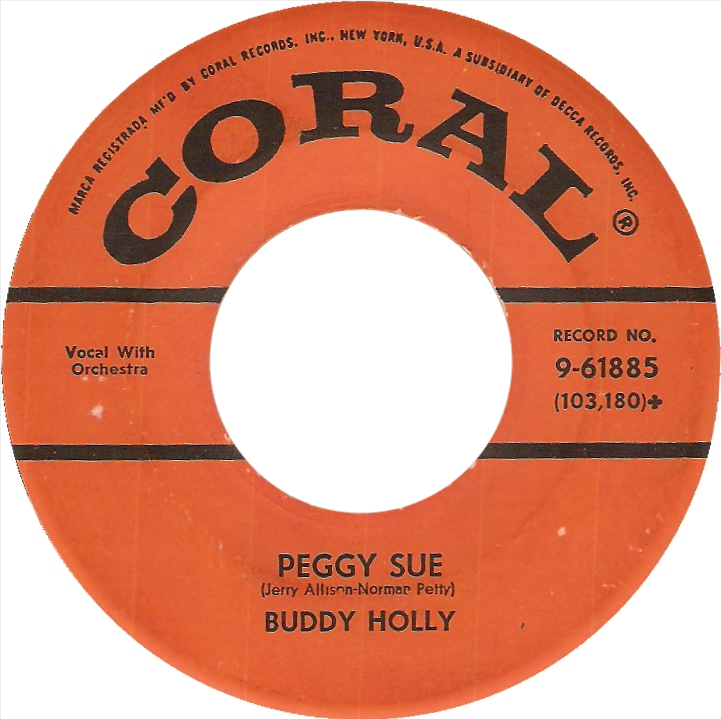 Recorded 29 June-1 July 1957 Peggy Sue is a masterpiece of minimalism as Holly was able to achieve knock-out rock’n’roll pyrotechnics with a simple arrangement of drums, guitar and voice. Originally written as Cindy Lou and named after Holly’s niece, Jerry Allison suggested changing the name to ‘Peggy Sue’ in honour of his girlfriend (and future wife). To achieve the echo-laden backbeat Allison set up his drums in the reception area outside the studio while Petty flicked the echo chamber switch on his control board up and down in time with the beat. Meanwhile, Holly sang and played the downstroke guitar rhythm while Niki Sullivan stood ready to flick the switch on Holly’s Stratocaster for the lead break. The record reached No.3 on the Billboard Top 100 and eventually sold over five million copies.