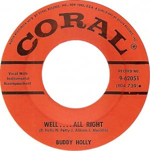 Recorded 12 February 1958 After touring for several months, including a trip over to Australia, the Crickets returned to Clovis to record this classic number of teenage angst and optimism. Although Chuck Berry was the poet laureate of teenage rebellion and passions, Buddy Holly’s songs often captured the anxieties and ambivalence of young people on the edge of adulthood, and Well… All Right is one of his finest examples (Joe Mauldin, Jerry Allison and Norman Petty are credited too). It’s a masterpiece built around a favourite exclamation of Holly’s tour-mate Little Richard that Holly redirected down a very different path. With the bare bones of Holly’s acoustic guitar and Jerry Allison time-keeping on the hi-hat, Holly produced a magnum opus built from equal parts of insecurities and optimism. Released as the B-side of Heartbeat in November 1958, it’s now considered one of Holly’s finest recordings.
