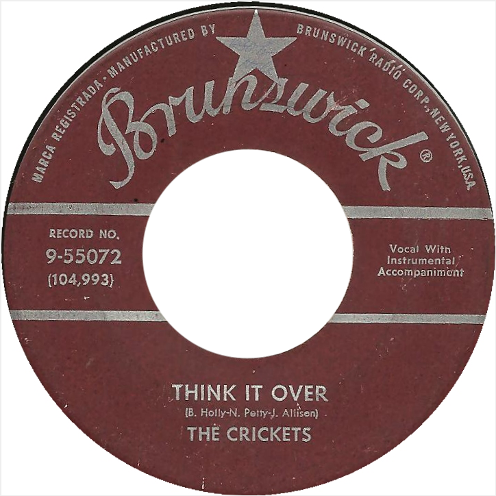 Recorded 13 February 1958 After being on tour from August 1957 through January 1958, the Crickets returned home, tired from the road, but brimming with ideas for new songs. They holed up in Norman Petty’s studio for four days in February and recorded a string of knock-out tunes. Think It Over was a cocky, self-assured rocker echoing the themes and beat of That’ll Be The Day. Although the song was originally written with a straightahead rock rhythm, once the Crickets began working it up in the studio, they decided a shuffle beat similar to That’ll Be the Day was a better fit. With overdubs from vocal group The Roses and a piano solo from Norman Petty’s wife Vi, the single scored a double-sided hit with Fool’s Paradise on the flipside in the summer of 1958.