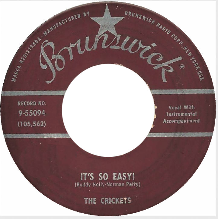 Recorded 25 May 1958 The Crickets were on the road for most of March and April 1958, and finally returned to Clovis on 25 May where they cut the power-packed rocker It’s So Easy. For the session, Holly added guitarist Tommy Allsup to the line-up. Five years older than Holly, Allsup was already a veteran musician, having spent several years playing with Johnny Lee Wills (brother of Western swing legend Bob Wills), and also leading his own Western swing band, The Southernaires. In April 1958, Allsup moved to Clovis to work as a session musician in Norman Petty’s studio. After meeting Holly, the pair hit it off and Allsup joined The Crickets in the studio and on the road as an unofficial member. His contributions were immediately apparent on the classic lead guitar line he laid down for this rocker.