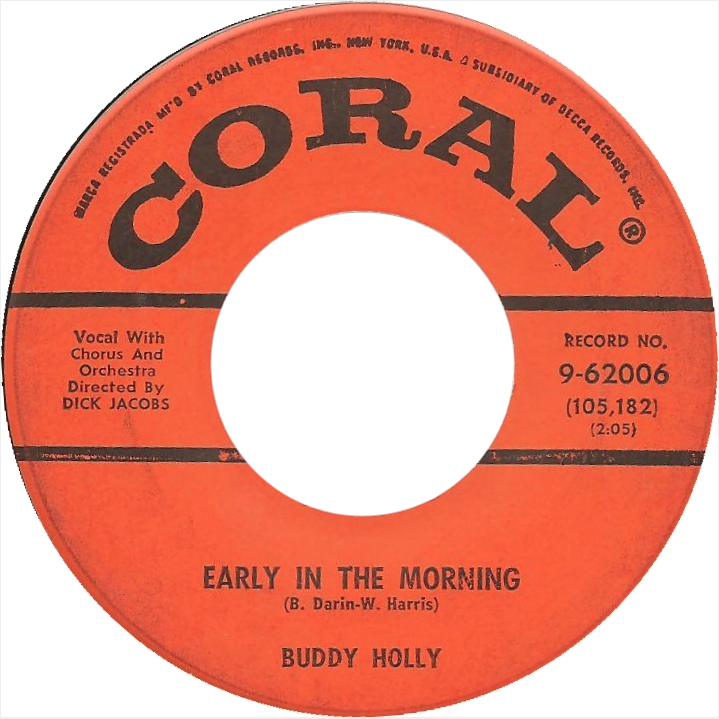 Recorded 19 June 1958 In June 1958, singer Bobby Darin was expecting to be dropped by Atco Records. Dick Jacobs at Brunswick offered to pick up Darin’s contract and, in expectation, recorded the Darin composition Early In The Morning for release once the Atco renewal option expired. Just days before the date of expiration, Darin’s Atco single Splish Splash suddenly took off, and Atco renewed his contract. Stuck with a potential hit he couldn’t release, Jacobs asked Buddy Holly to record the song, using the same arrangement and musicians used by Darin. Working with the Helen Way Singers, a black gospel chorus, and famed studio saxophonist Sam ‘The Man’ Taylor, Holly quickly nailed the gospel-influenced rave-up, scored a #32 hit on the charts, and opened new doors for his musical career.