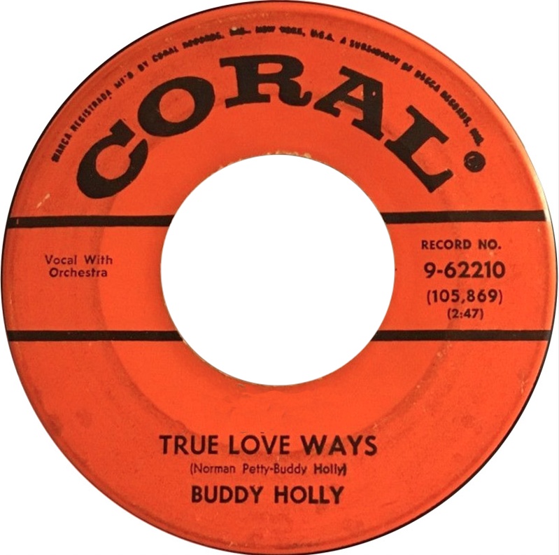 Recorded 21 October 1958 By the late summer of 1958, Holly was spending more of his time in New York City, learning more about recording and the music business. Holly soon had another reason to spend time in the Big Apple when he met María Elena Santiago in the offices of Peer-Southern music publishing in New York and married her on 15 August 1959. Eager to expand his range, Holly decided to try recordings aimed directly at the pop market. Recorded at Decca Records’ Pythian Temple Studio in New York with the Dick Jacobs Orchestra, True Love Ways was written by Holly for his new bride. Despite its lush orchestration, the song was similar to the slow dance rock’n’roll ballads that were popular at the time, and could have easily been recorded with the Crickets.