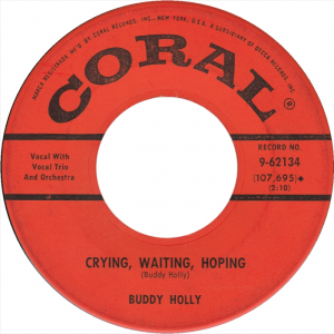 Recorded 14 December 1958 Holly’s final studio sessions may have been heavily orchestrated pop, but he had no plans to abandon rock’n’roll for easy listening, as the ‘Apartment Tapes’ plainly demonstrate. Crying, Waiting, Hoping was a classic Holly rocker along the lines of Maybe Baby or Rave On. Built around his archetypal themes of anxiety and optimism, Holly delivered a driving rock’n’roll-charged performance of the song, accompanied solely by his acoustic. Especially electrifying is the way he growls out his vocals on the bridge. After extensive overdubbing by Norman Petty, the song was released in July 1959 as the B-side of Peggy Sue Got Married. Of all the ‘Apartment Tapes’ songs to suffer Petty’s ‘improvements’, Crying, Waiting, Hoping is the one least diluted by tampering, but Holly’s original is by far the better version.